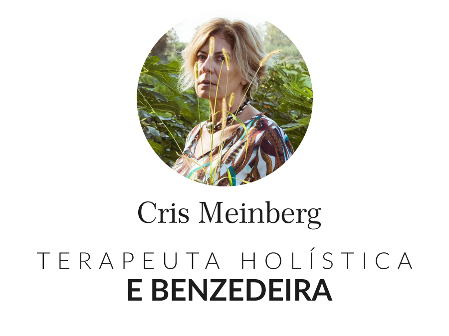 Cris Meinberg é benzedeira e médium desde a infância, idealizadora do Benzimento na Terra do Bugio em São Roque, onde também coordena o Hospital Espiritual para Tumor Maligno, atendendo pessoas de diversas regiões. Com uma abordagem holística, integra conhecimentos de várias tradições espirituais, como Budismo Tibetano, Umbanda, Xamanismo e Ifá, acumulados em vivências pelo Vietnã, Nepal e Índia. Ifagbami Aworeni, como é conhecida no Ifá, dedica-se à autocura, espiritualidade e autoconhecimento. É terapeuta holística, focada no propósito de vida e missão de alma, utilizando técnicas complementares e frequenciamento em seus atendimentos.